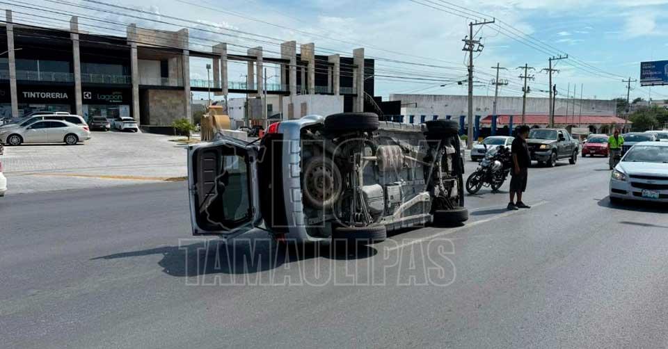Volcadura en Bulevar Hidalgo de Reynosa dejó tres lesionados