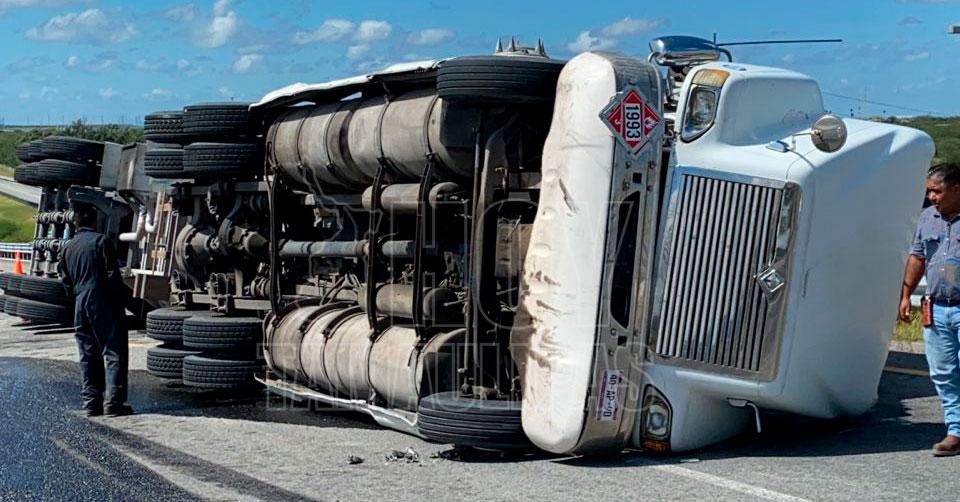 Vuelca pipa cargada con gasolina en Reynosa