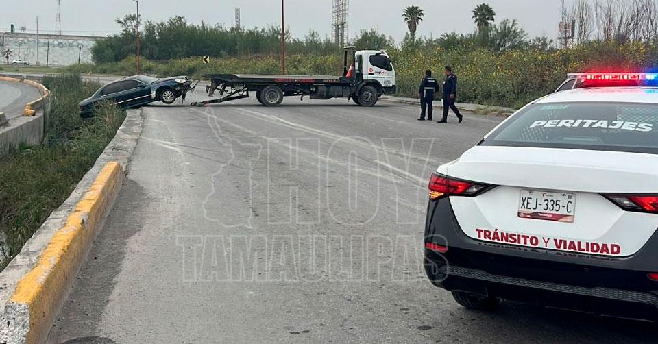 Abandonan auto tras caer a canal pluvial en Reynosa