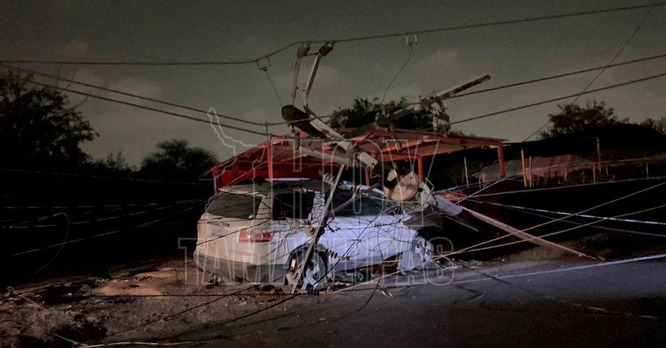 Cafre del volante derribó poste de luz en Reynosa; amplio sector sin energía
