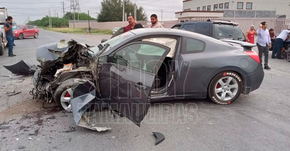 Choque entre trailer y auto deportivo dejó a una mujer lesionada en Reynosa