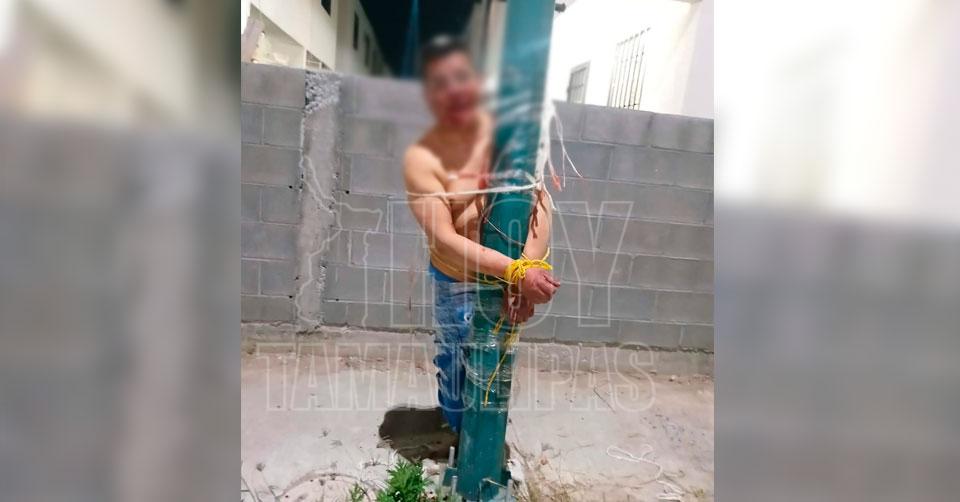 Vecinos capturan a ladrón de casas en Reynosa y lo amarran a un poste