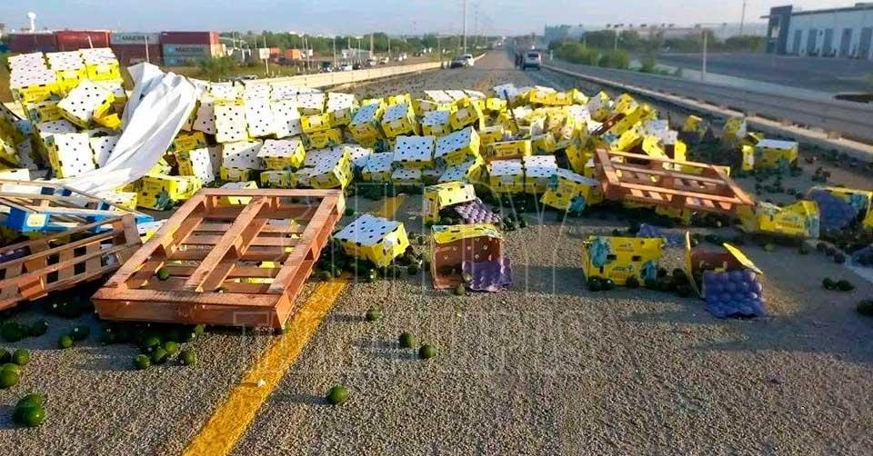 Camión cargado de aguacates vuelca en Reynosa; se registra rapiña