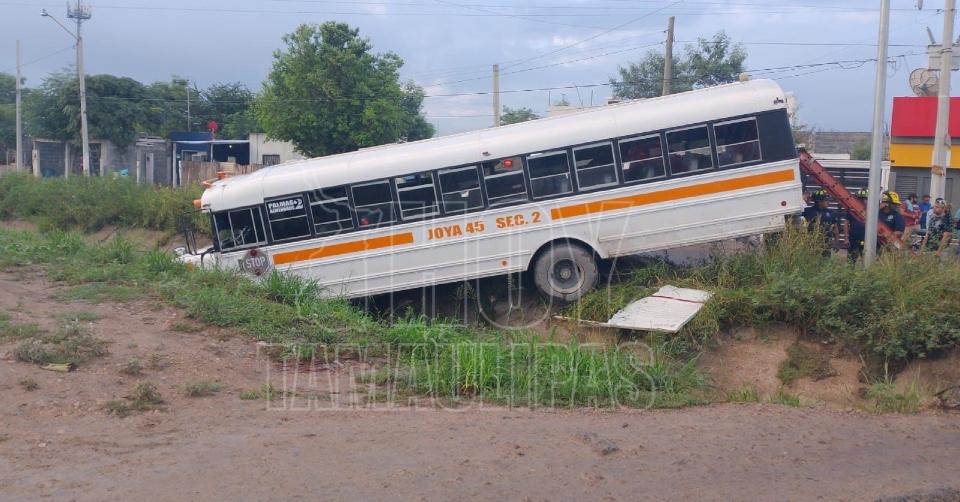 Camión de transporte público cae a canal de riego en Reynosa; siete lesionados