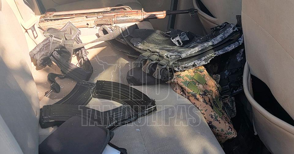 Malandros abandonan “cuerno de chivo” en camioneta y huyen, en Reynosa