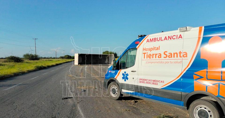 Muere tras volcadura chofer de camión, en la carretera Reynosa-San Fernando
