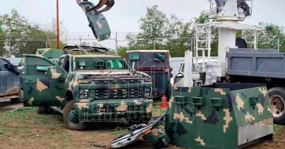 Destruye FGR en Tamaulipas 14 vehículos con blindaje artesanal denominados monstruos