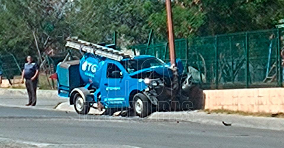 Pipa de gas se quedó sin frenos y se estrelló contra una luminaria en Reynosa