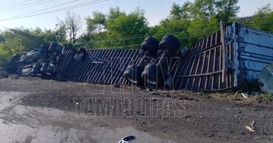Vuelca tractocamión con 18 toneladas de limón en el libramiento a Monterrey