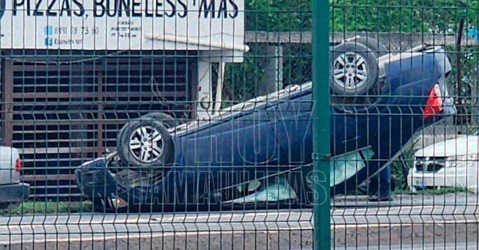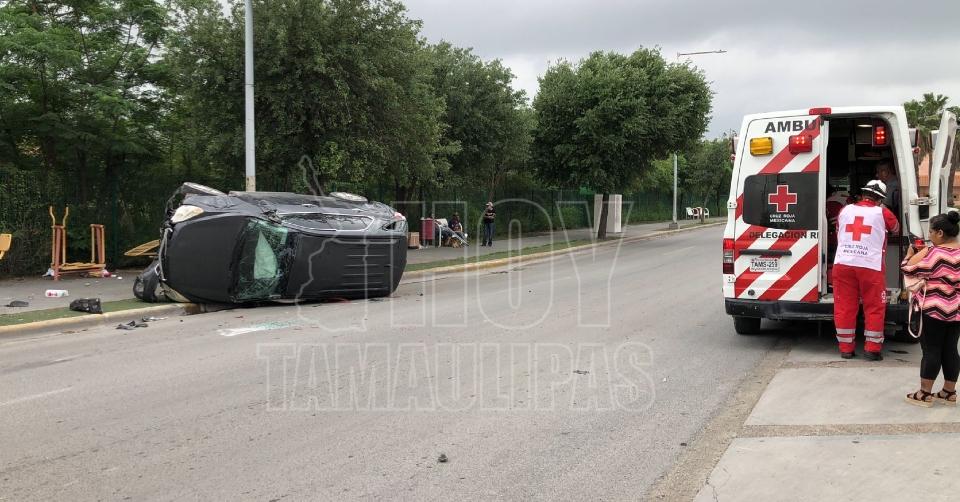 Por no ceder el paso, conductora choca y provoca volcadura en Reynosa; 2 lesionados