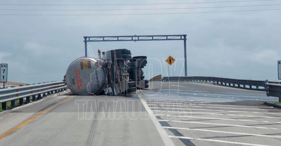 Volcó pipa en el Libramiento Reynosa Sur ll; circulación permanece cerrada