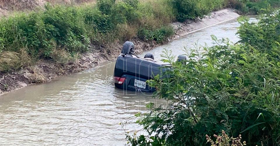 Veloz conductora se sale de la carretera y cae a canal en Reynosa
