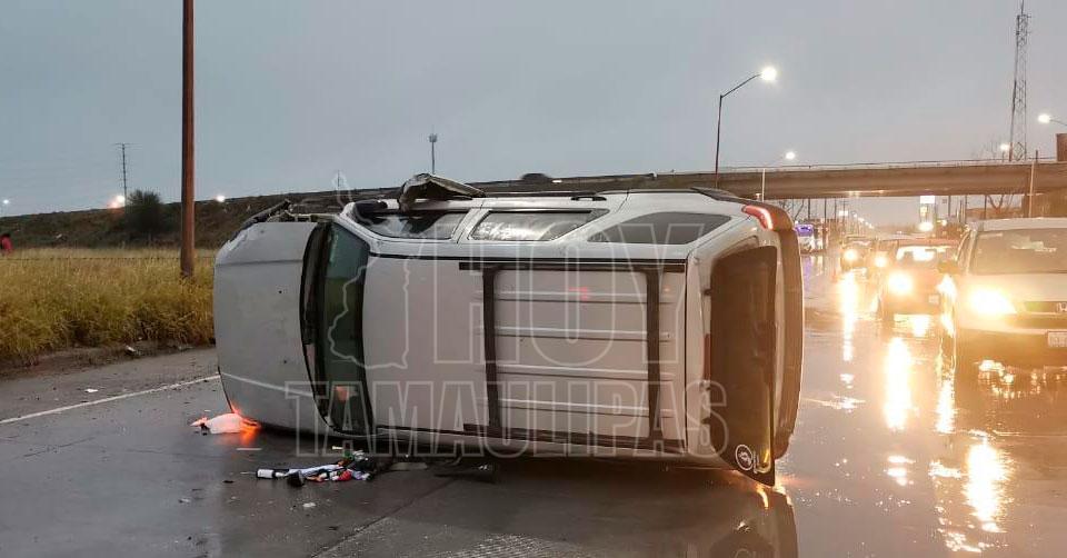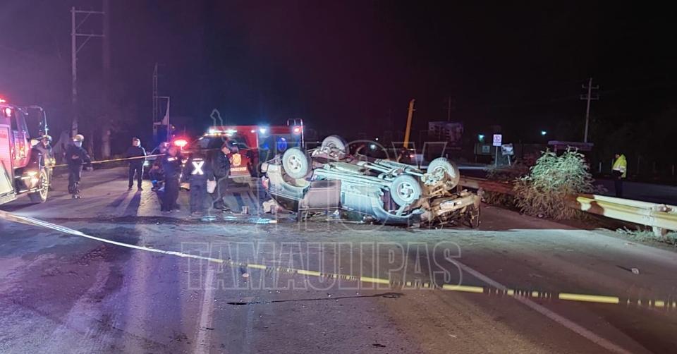 Muere conductor y su esposa está grave tras volcadura en Reynosa