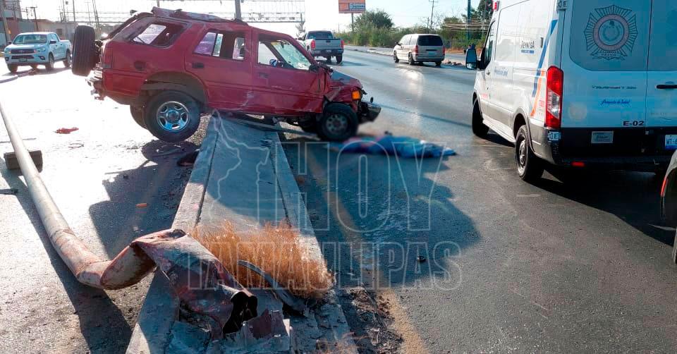 Muere hombre tras chocar contra luminaria y volcar en la Río Bravo-Reynosa