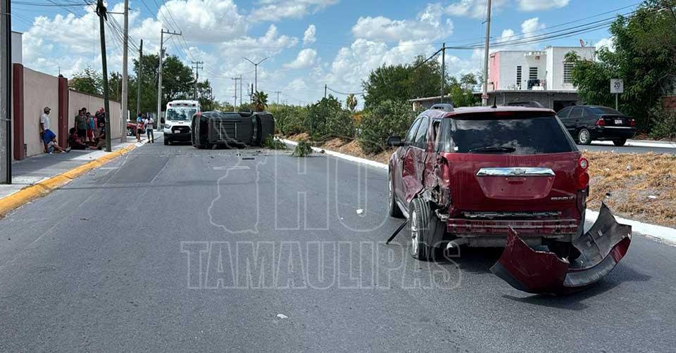 Tres lesionados tras choque y volcadura en el fraccionamiento Bugambilias de Reynosa