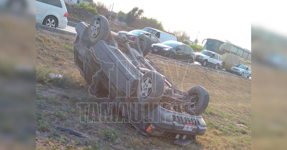 Vuelca y le echa la culpa a un tráiler en Reynosa
