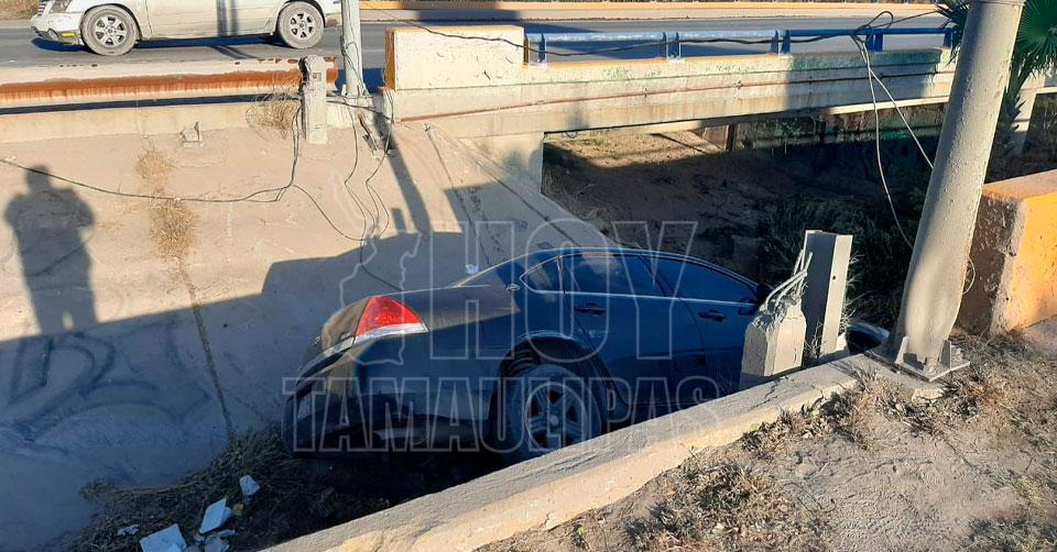 Jovencita por poco y cae a un canal con todo y auto en Reynosa