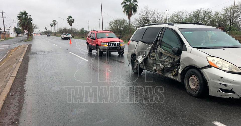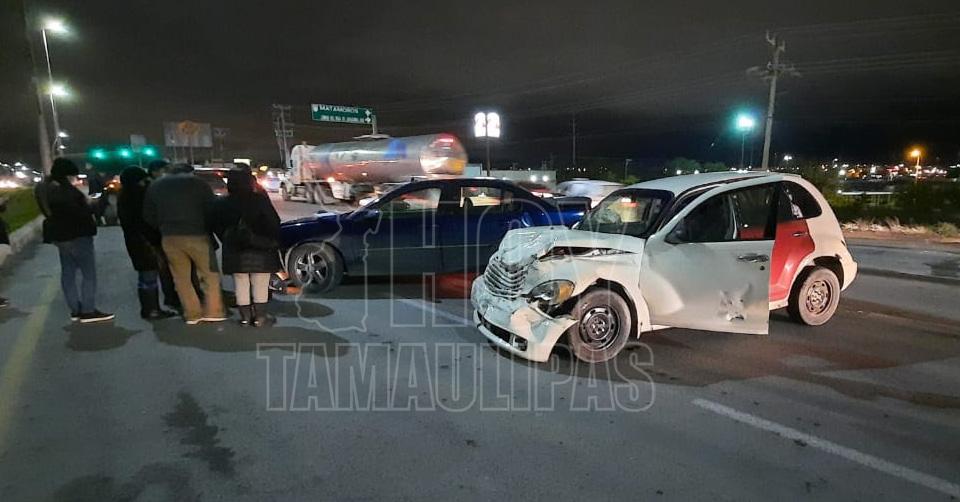 Conductor derrapa y choca de frente contra vehículo en Reynosa