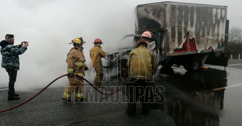 Arde camión de carga en la carretera Matamoros-Reynosa