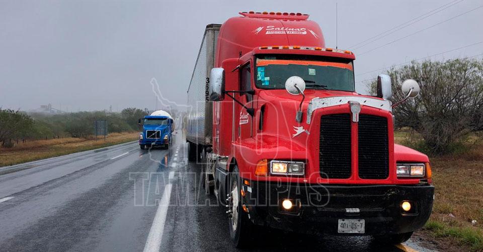 Tráiler termina atravesado en la carretera Reynosa-Monterrey