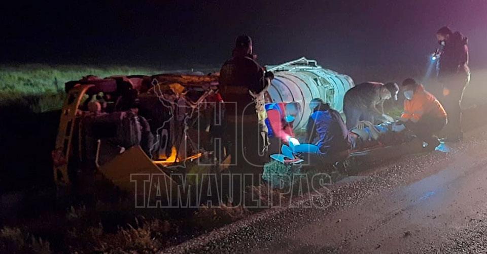 Volcó pipa en libramiento de Reynosa y chofer resultó lesionado