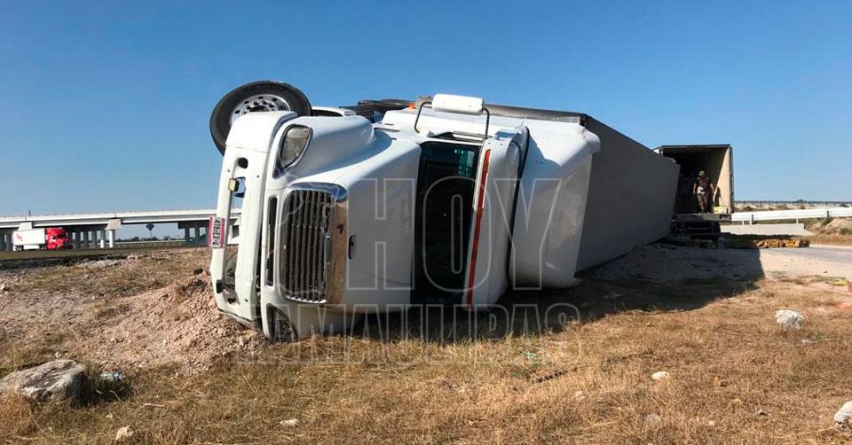 Vuelca tráiler cargado con 30 toneladas de limón en libramiento de Reynosa