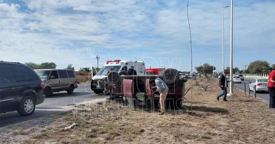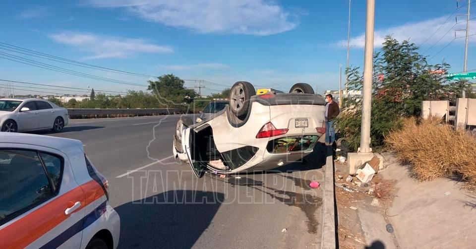 Conductora vuelca en Reynosa y le echa la culpa al sol