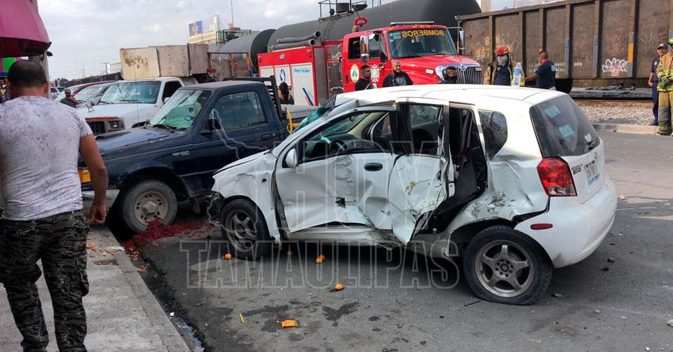Tren arrastra vehículo en Reynosa y deja tres lesionados