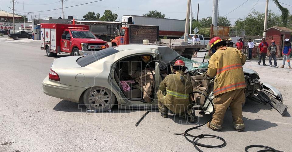 Accidente vial deja 6 lesionados y un prensado en Reynosa