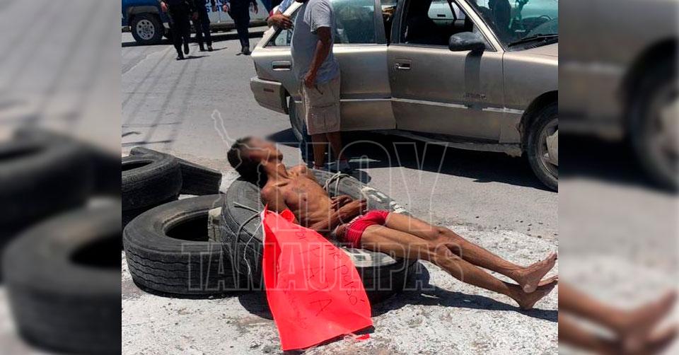 Atrapan a ladrón, le dan una paliza y lo amarran a unas llantas en Reynosa