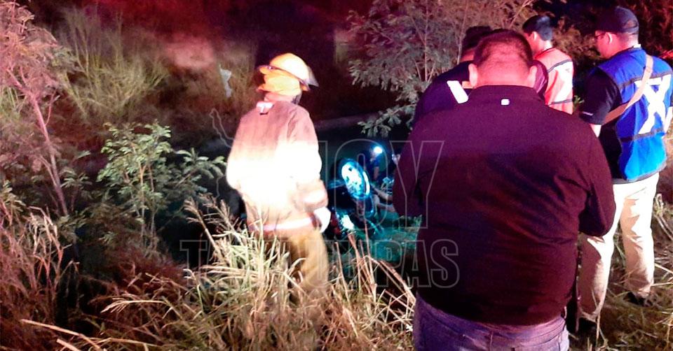Mujer muere ahogada tras volcar auto y caer a canal en Reynosa