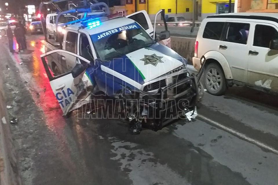 Fuerte choque de Policía Estatal en Reynosa deja daños materiales