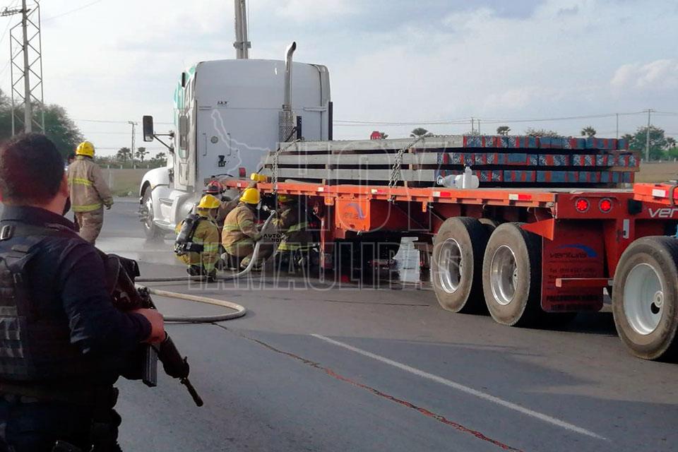 Se le incendian llantas traseras a tractocamión en Reynosa