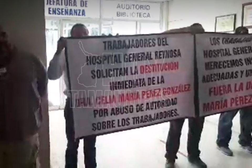 Se manifiestan trabajadores del Hospital General en Reynosa