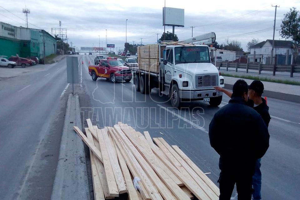 Se cae madera de camión y provoca caos en Reynosa