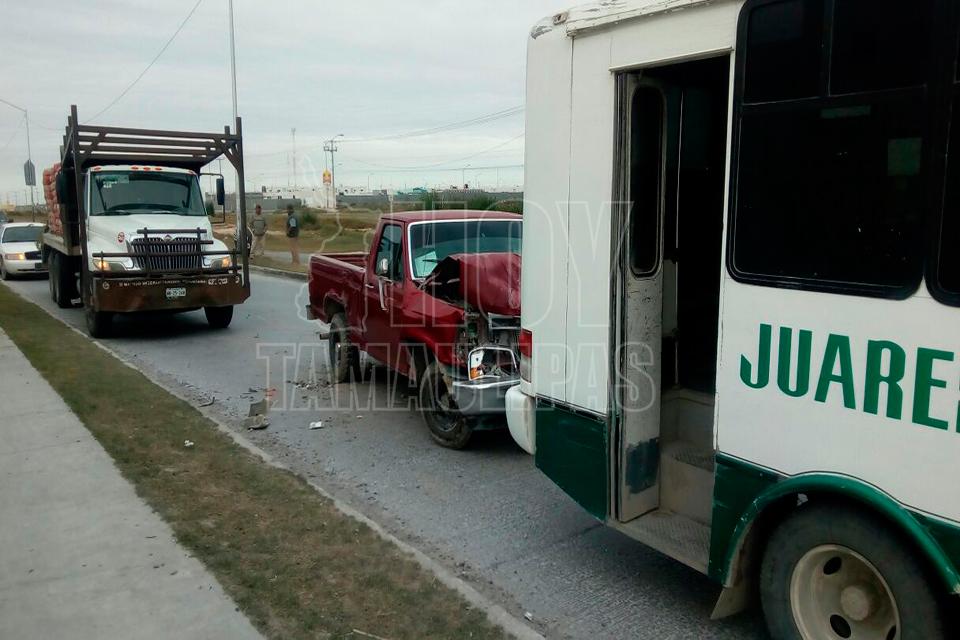 Estrella su camioneta contra micro en Reynosa