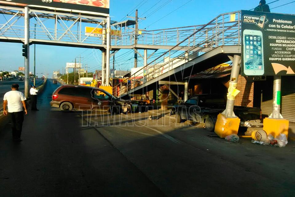 Accidente vehicular daña estructura de puente peatonal en Reynosa