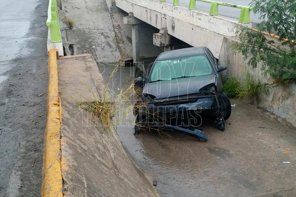 Ebrio sujeto abandona su auto tras caer en canal de Reynosa