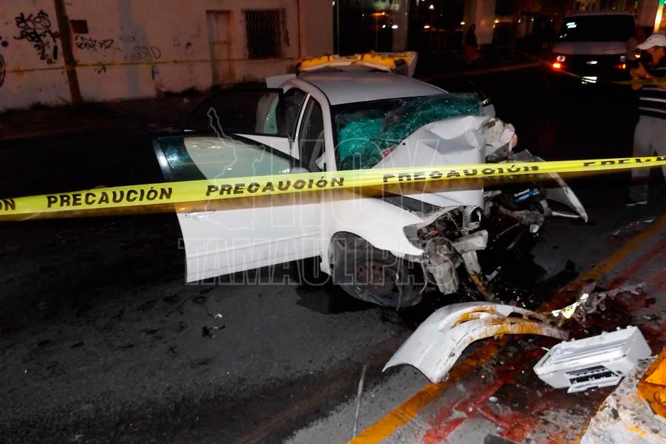 Choque contra base de semáforo en Reynosa dejó 2 muertos y 2 heridos