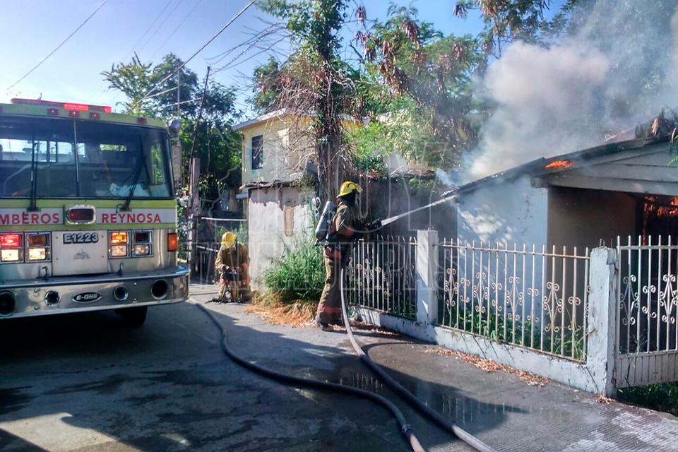 Incendio reduce a cenizas casa de madera en Reynosa
