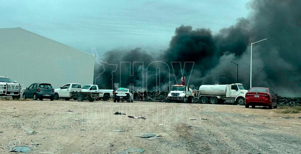 Gigantesco incendio en depósito de llantas al sur de Reynosa