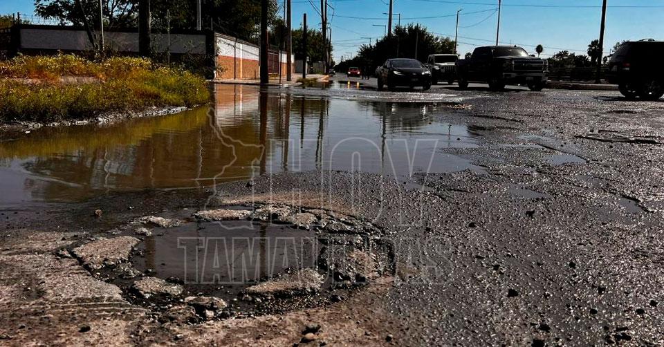 Tres lesionados al caer motocicleta en un enorme bache en Reynosa