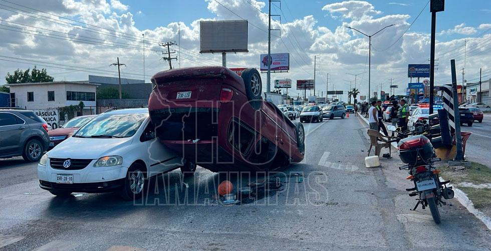Ebrio conductor choca, vuelca y huye, pero es detenido en Reynosa