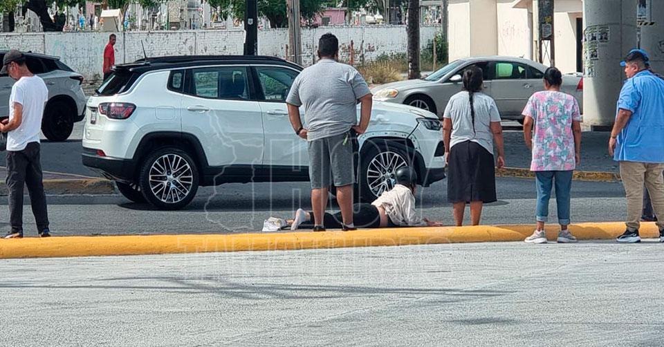 Mujer en motoneta se pasó alto y chocó con camioneta en Reynosa; está delicada