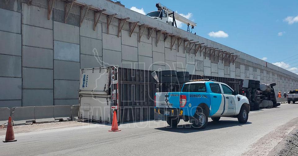 Volcó tráiler en el acceso al Puente de Pharr en Reynosa