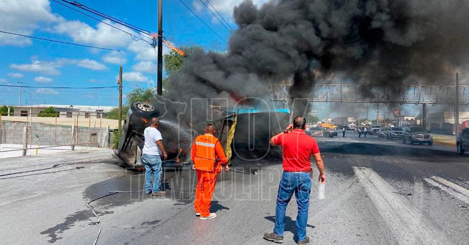 Caos vial generó volcadura de camión en libramiento a Monterrey, en Reynosa