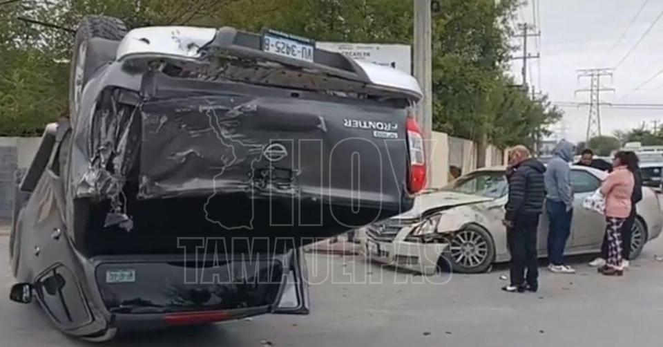 Chocan microbuses en la carretera a San Fernando en Reynosa