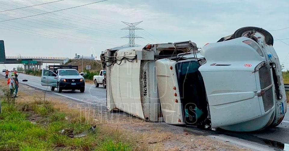 Tres lesionados al volcar camión recolector de basura en la Río Bravo-Reynosa