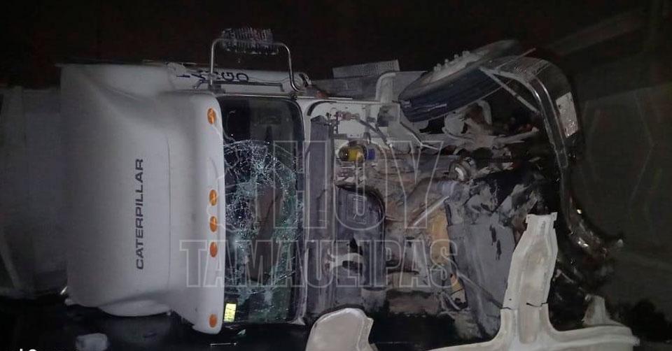 Volcadura de tráiler provocó caos vial en la carretera Reynosa-Río Bravo