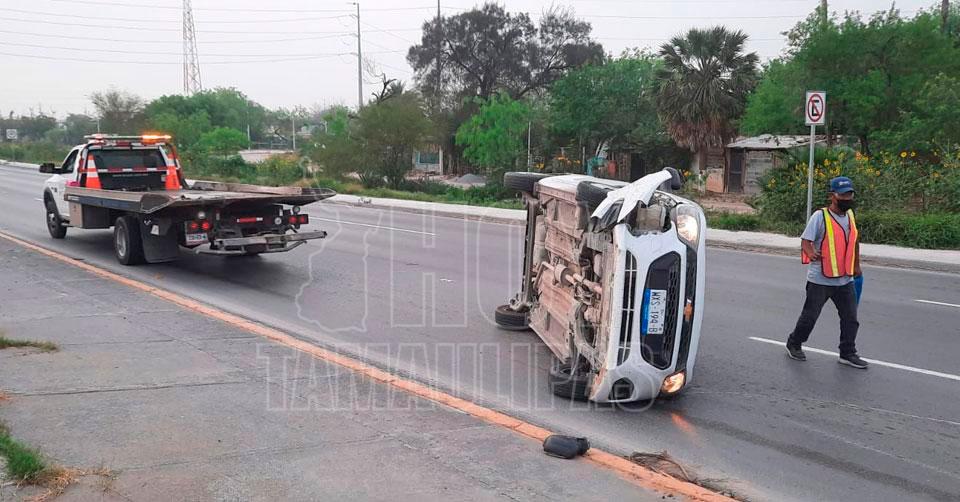 Conductor provoca volcadura en Reynosa y huye